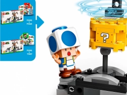 Il set include una coppia di Reznor, un'altalena con Grrrol, Toad blu e l'iconico Blocco Interrogativo. È ideale sia per il gioco in solitaria sia per la cooperazione con un amico e amplia alla grande qualsiasi corso iniziale LEGO SUPER MARIO.