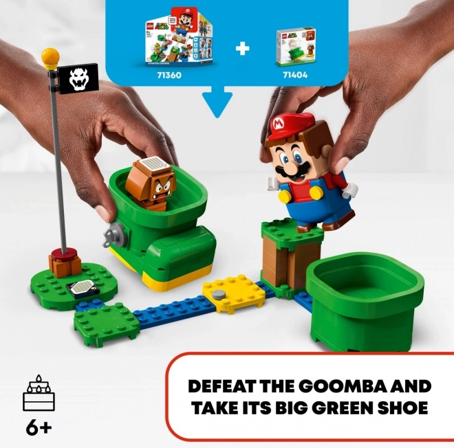 Il set di espansione LEGO Super Mario Scarpa di Goomba offre ai giocatori la possibilit3 di perfezionare i propri livelli di gioco con elementi interattivi aggiuntivi. La scarpa costruibile con mattoncini consente ai giocatori di saltare e fare acrobazie aeree mentre raccolgono monete digitali e perfezionano le proprie abilit3.
