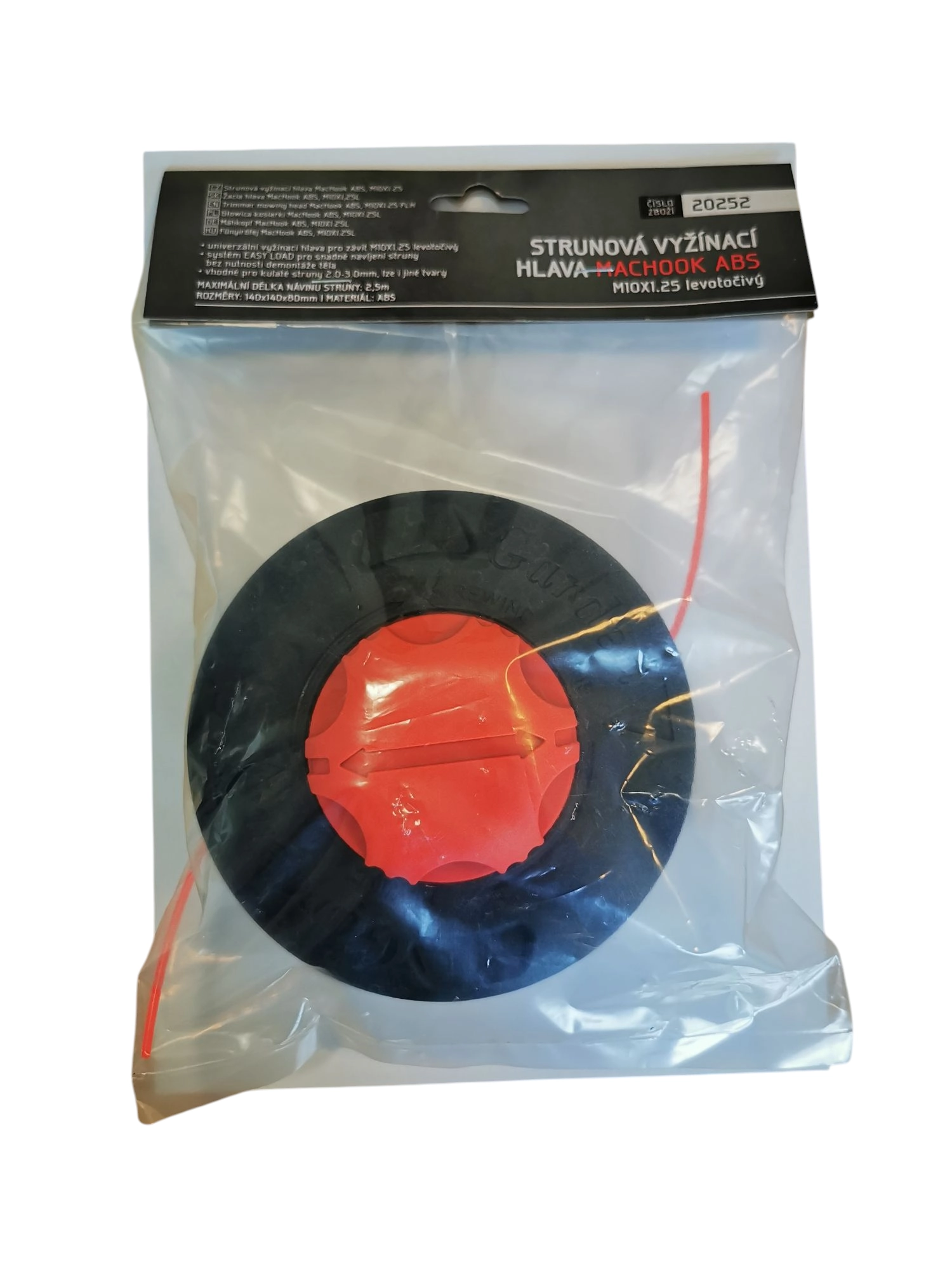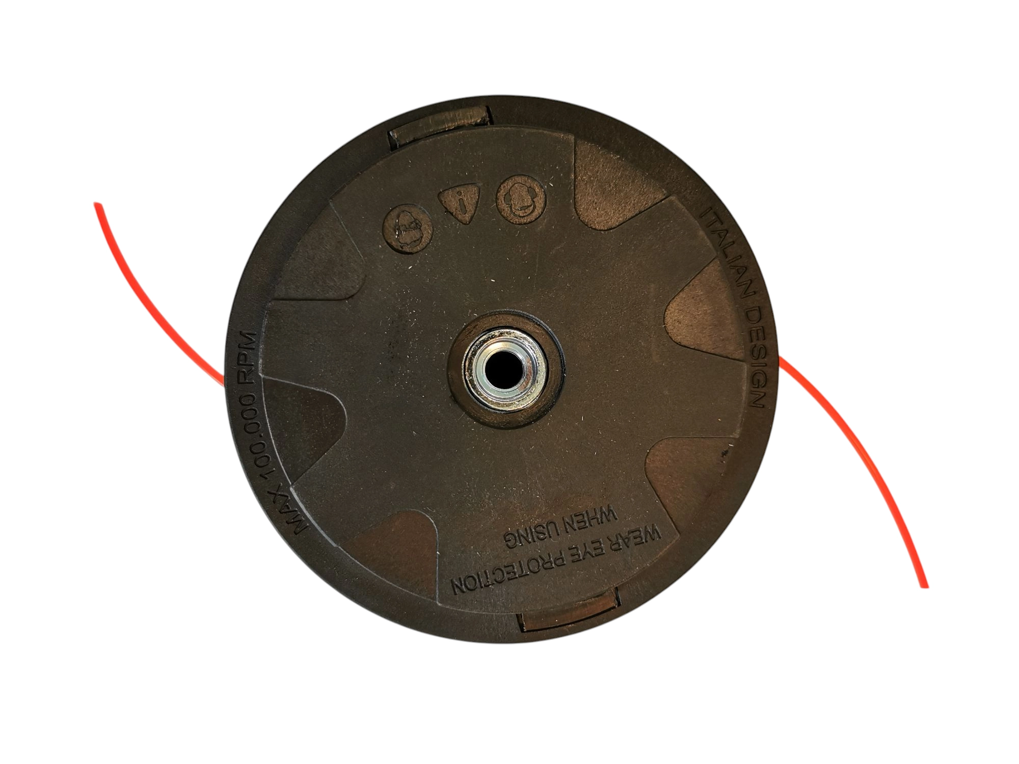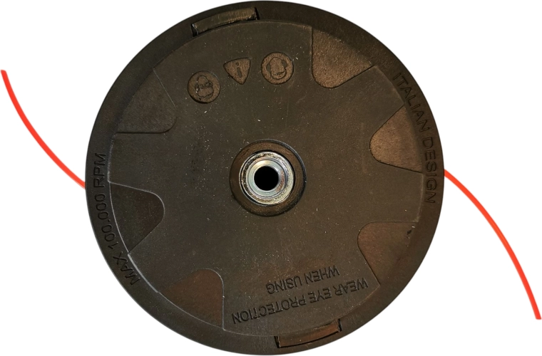 Il corpo resistente in ABS, con elevata durezza ed elasticità, è pronto per lavori intensivi in vegetazione fitta. La testina è adatta a fili tondi con diametro 1,5–3,2 mm e può contenere fino a 2 m di filo avvolto. La versione universale con filettatura interna M10 × 1,25 sinistra si adatta alla maggior parte dei decespugliatori sul mercato.
