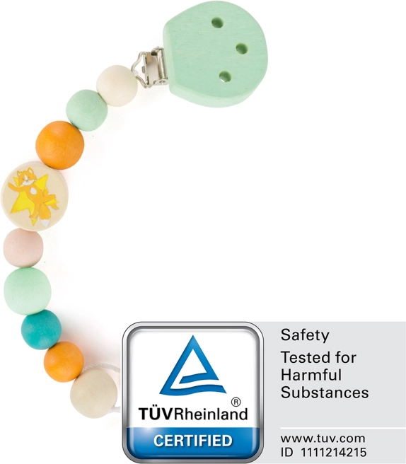 La clip per ciuccio in legno Small Foot Lex combina materiali naturali con colori vivaci, risultando non solo pratica ma anche un bellissimo accessorio per passeggino o abbigliamento. Le perline lisce e le forme (comprese le stelline) invitano all’esplorazione con le mani e con gli occhi e sostengono in modo naturale lo sviluppo della motricità fine e della percezione sensoriale.