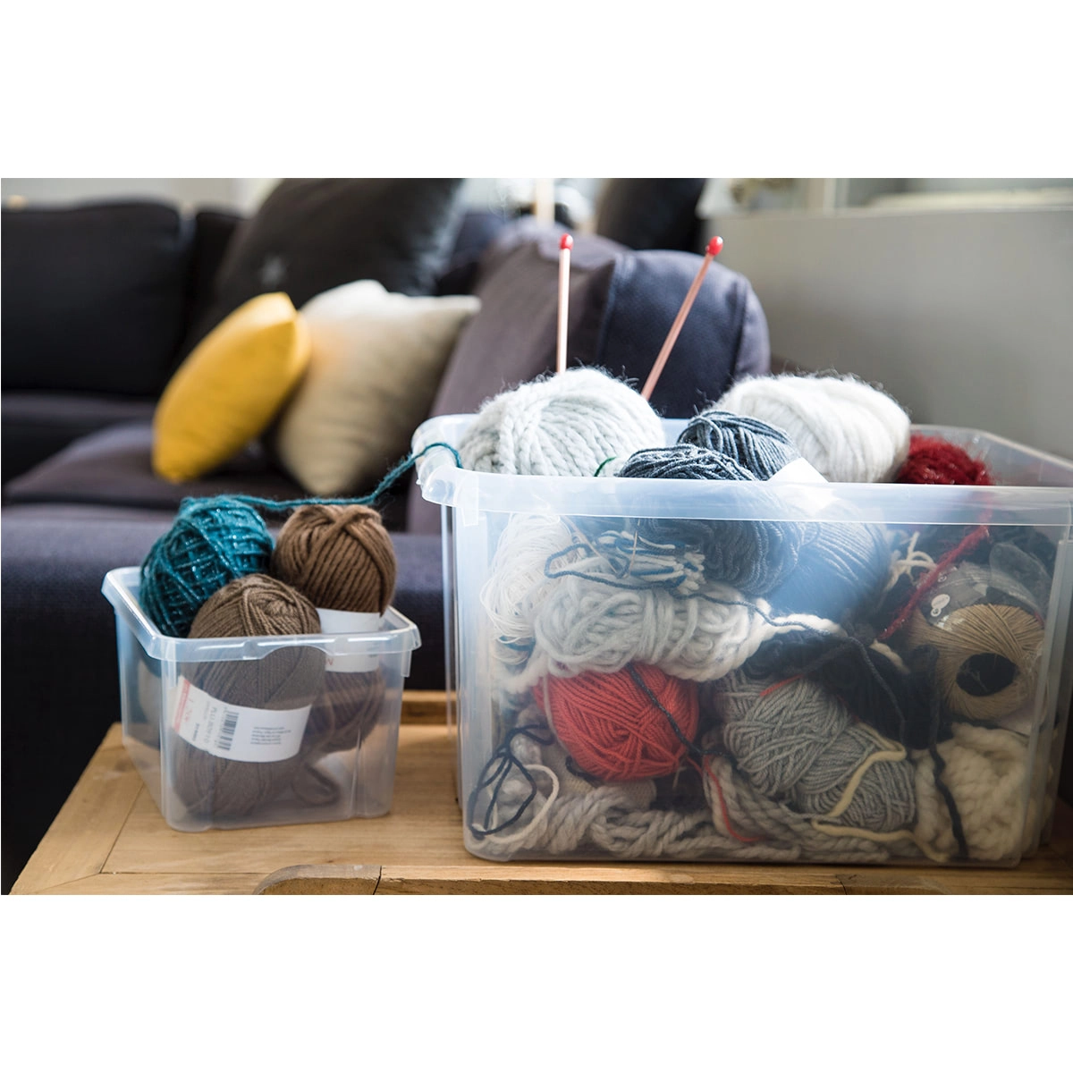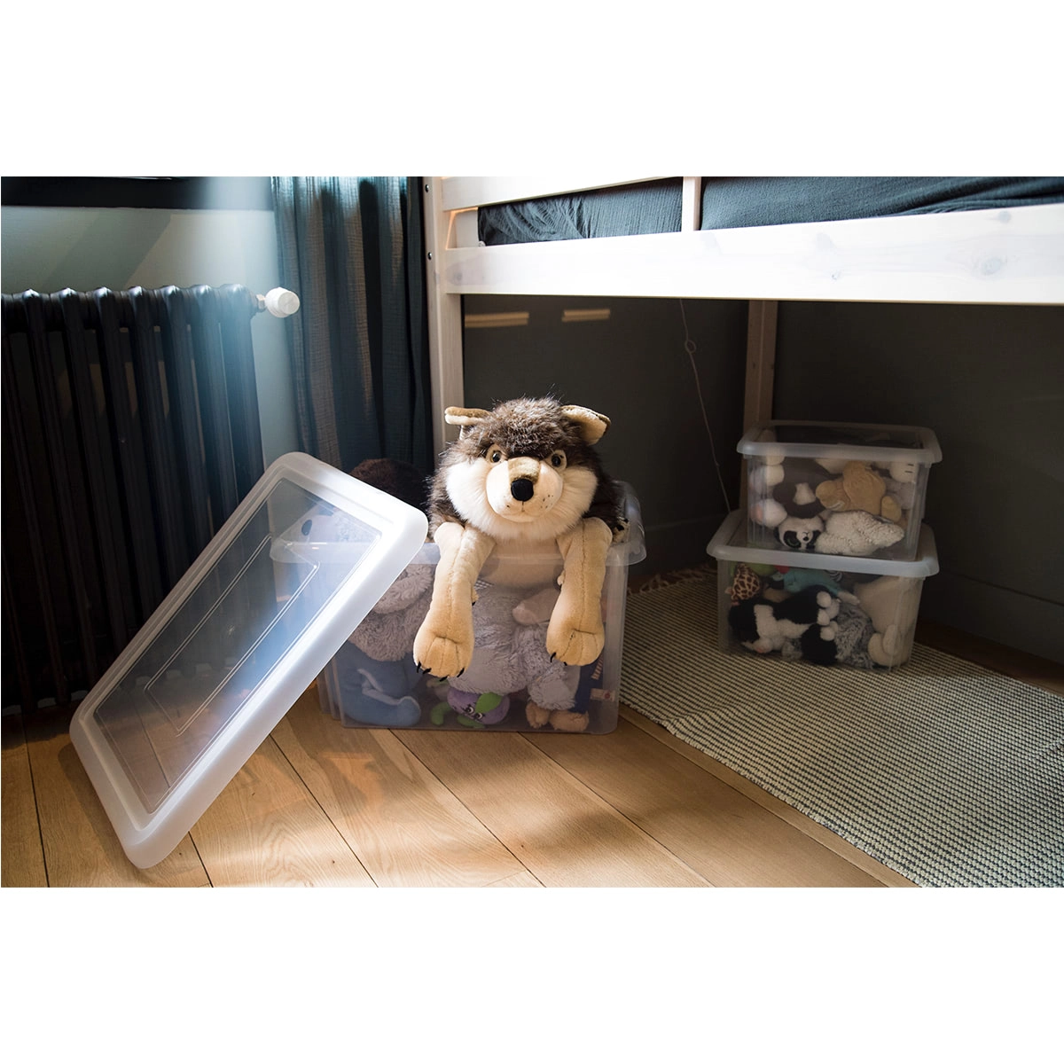 Il contenuto è sempre a vista: senza aprire il coperchio vedi subito cosa c’è dentro. Ideale per giocattoli, tessili e materiali creativi.