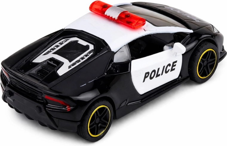Elegante auto sportiva della polizia in scala 1:43 che farà felici piccoli e grandi fan delle auto veloci. Grazie alla carrozzeria in metallo, al meccanismo a retrocarica pull-back e alle portiere apribili, offre un gioco realistico senza batterie. Le dimensioni compatte e la costruzione resistente garantiscono un divertimento duraturo, anche come pezzo decorativo da collezione.