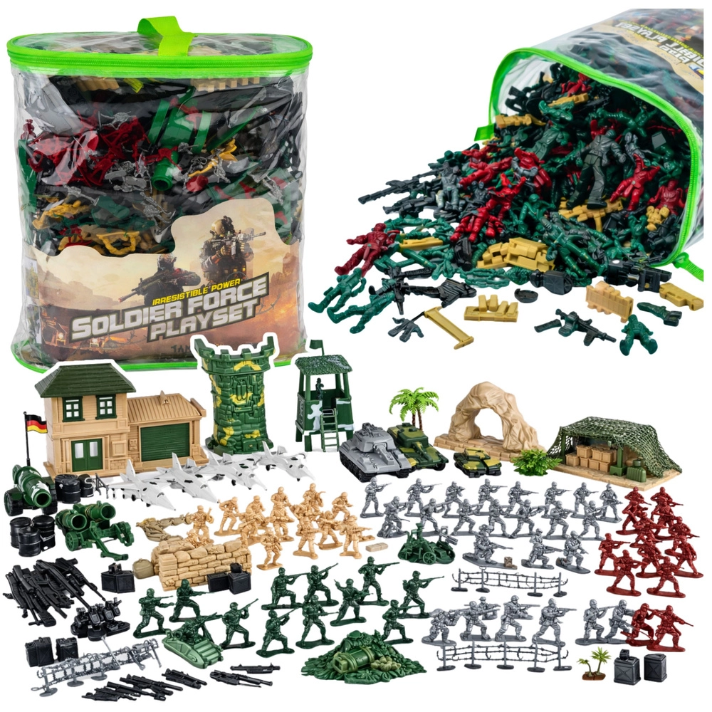 Scopri il set militare ampliato per un gioco creativo con fino a 300 pezzi – soldatini, veicoli, cannoni, armi e ricchi accessori. Le figurine in plastica resistenti stimolano fantasia, motricità e lavoro di squadra. La pratica borsa trasparente con zip facilita riporre e trasportare. Ideale per missioni d’azione in casa, all’aperto e in viaggio.