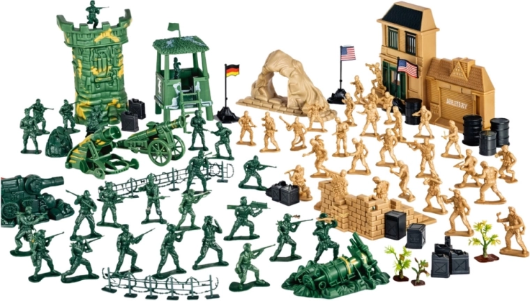 - Figure e accessori vari: soldatini, veicoli, cannoni, armi, barriere, bandiere, recinzioni