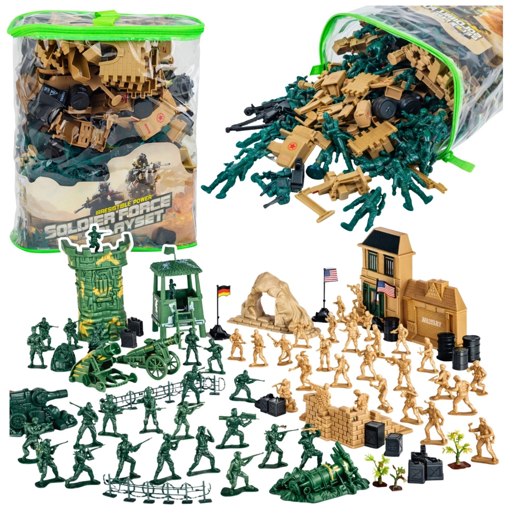 Un ampio set militare per bambini offre fino a 400 pezzi per infiniti scenari di battaglie, missioni e difesa delle basi. Troverai soldatini, veicoli, cannoni, barriere e altri accessori militari. Inclusa una borsa trasparente con zip per riporre e trasportare facilmente. Le figure in plastica resistente incoraggiano il gioco creativo, sviluppano fantasia e motricità fine – ideale per il divertimento sia individuale che di squadra, in casa e all’aperto.