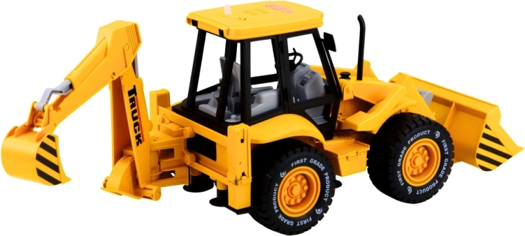 Questa pala‑escavatore da cantiere, curata nei dettagli, permette ai bambini di vivere l'atmosfera di un vero cantiere. Grazie alla benna anteriore mobile e alla benna scavante posteriore gestisce carico, sollevamento e trasporto del materiale. Gli effetti luminosi e sonori rendono il gioco ancora più realistico.