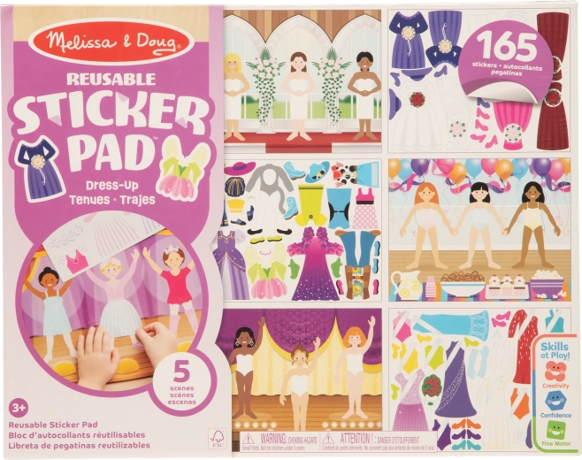 Il set creativo di sticker del brand MELISSA & DOUG offre divertimento senza disordine. Include 165 sticker riutilizzabili e 5 grandi scenari con ragazze da vestire. I bambini possono applicare, staccare e ricombinare facilmente gli adesivi, sviluppando immaginazione, motricità fine e coordinazione mano-occhio – ideale anche in viaggio.