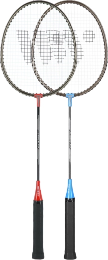 Nella confezione troverai due racchette nelle versioni nero–rosso e nero–blu e una pratica custodia in nylon con tracolla per un trasporto confortevole. Con lunghezza di 66,5 cm e peso di 95–105 g, le racchette offrono un equilibrio tra maneggevolezza e potenza del colpo.