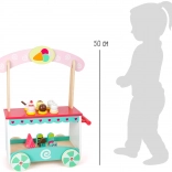 Scopri la magia del gioco del negozio con l’elegante chiosco di gelati in legno di small foot. Il carretto mobile con ruote e maniglia offre una ricca dotazione: 6 palline di gelato per coni e 6 ghiaccioli su stecco. Grazie al pratico sistema di palline sovrapponibili, i bambini combinano facilmente i gusti, sviluppando creatività, motricità fine e abilità sociali. La robusta struttura in legno garantisce resistenza e lunga durata.