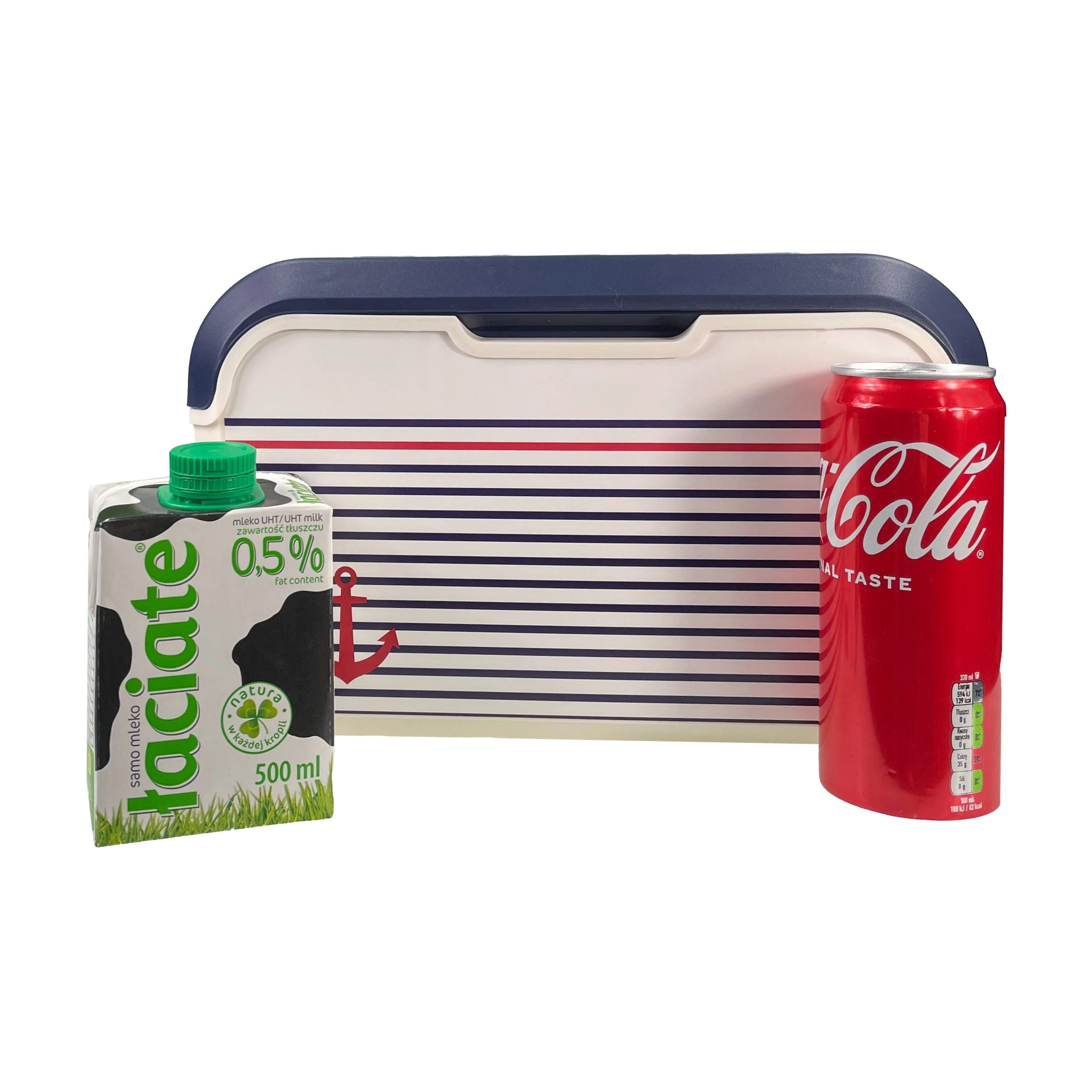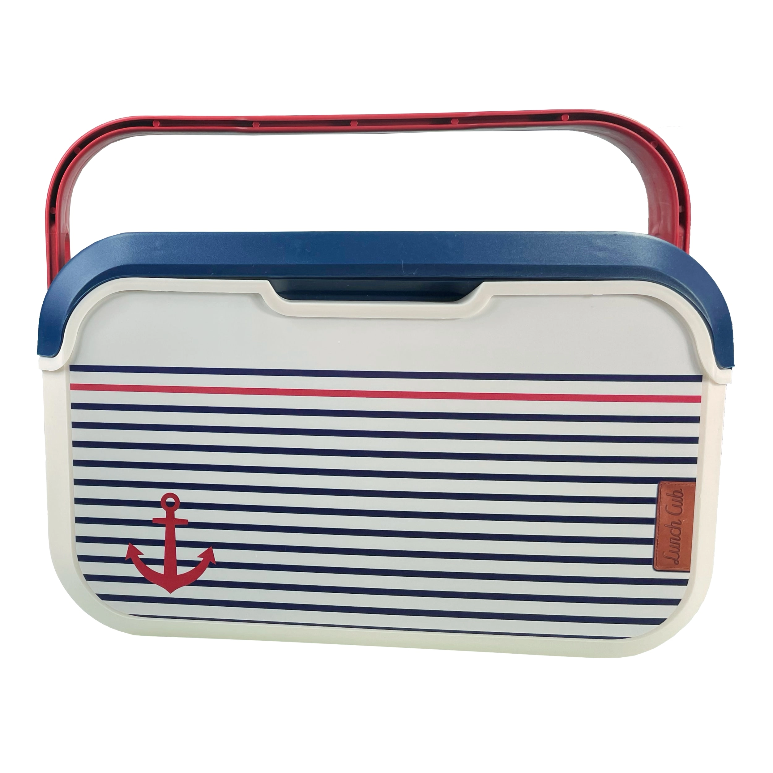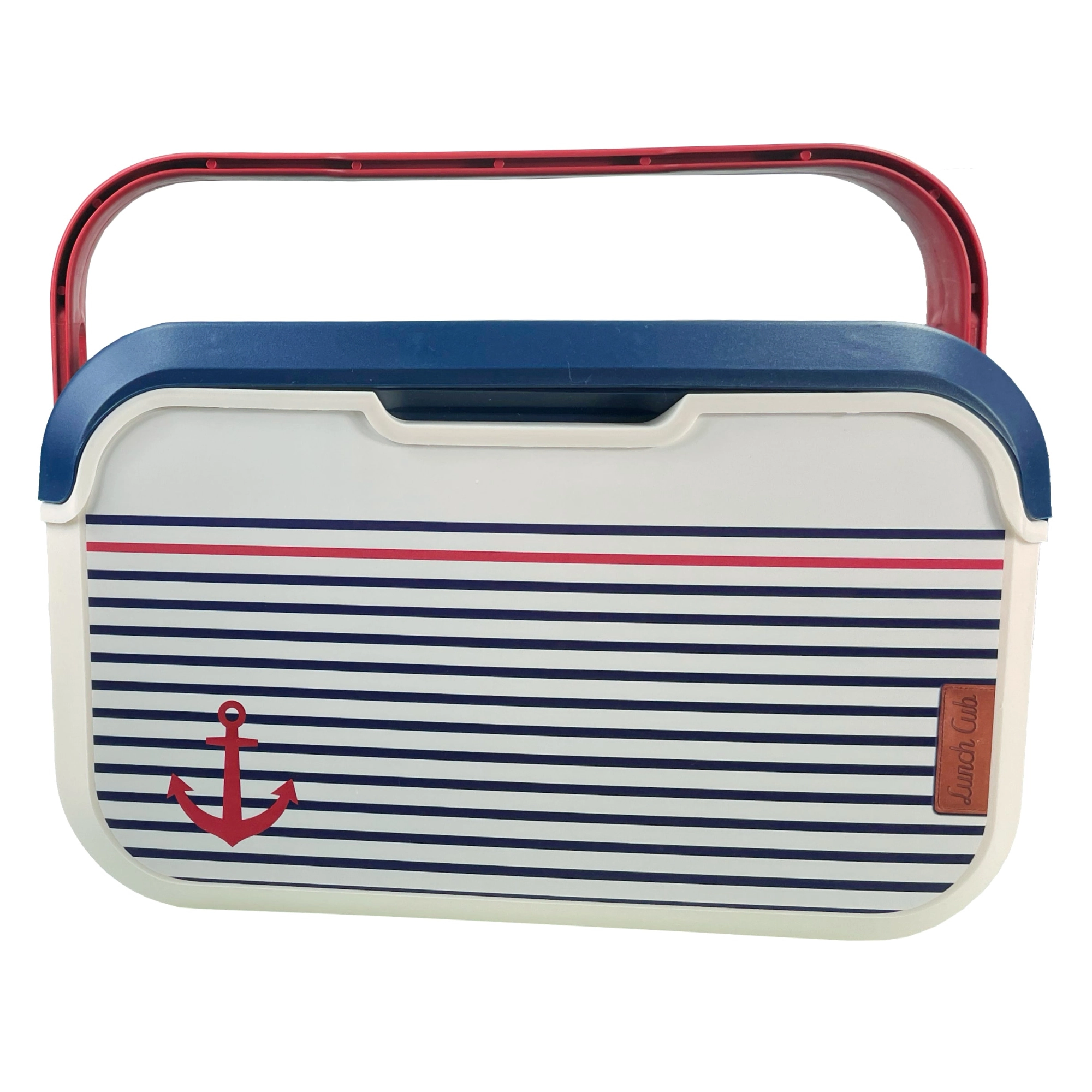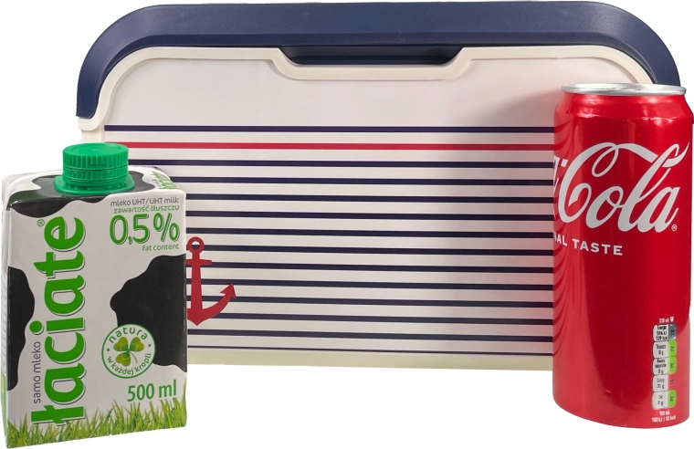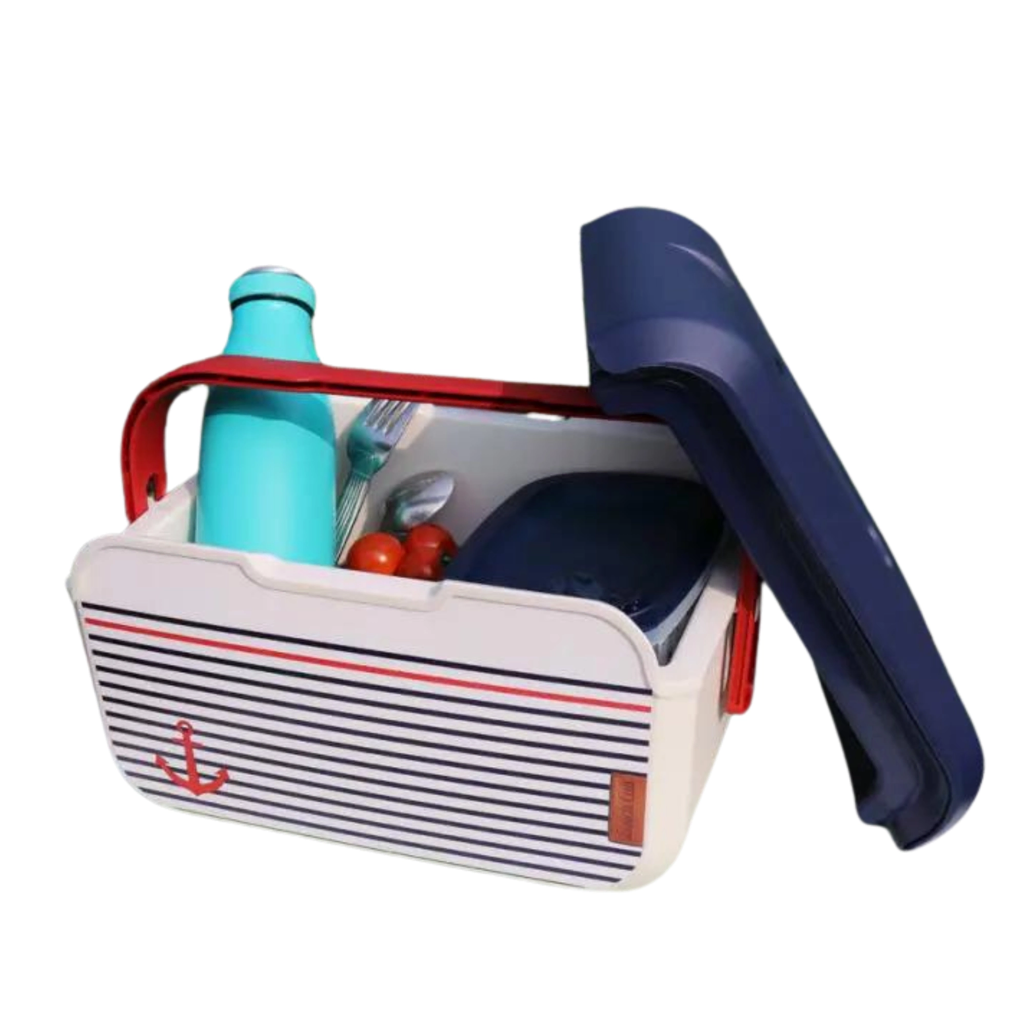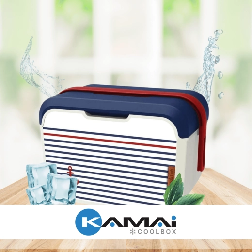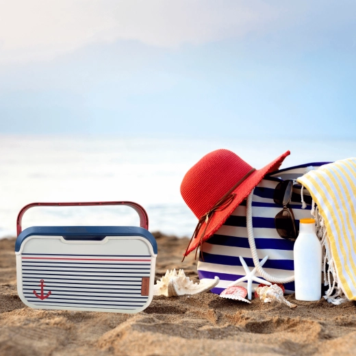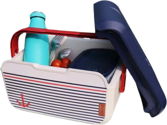 Il compatto mini frigo portatile KAMAI EDA 5 l in design marinaresco mantiene cibi e bevande freschi più a lungo. Grazie alla struttura leggera, alla maniglia rossa sagomata e al resistente corpo in plastica PP è ideale per picnic, spiaggia, in auto e per una gita con i bambini. Raffredda con piastre eutettiche ed è facile da pulire.