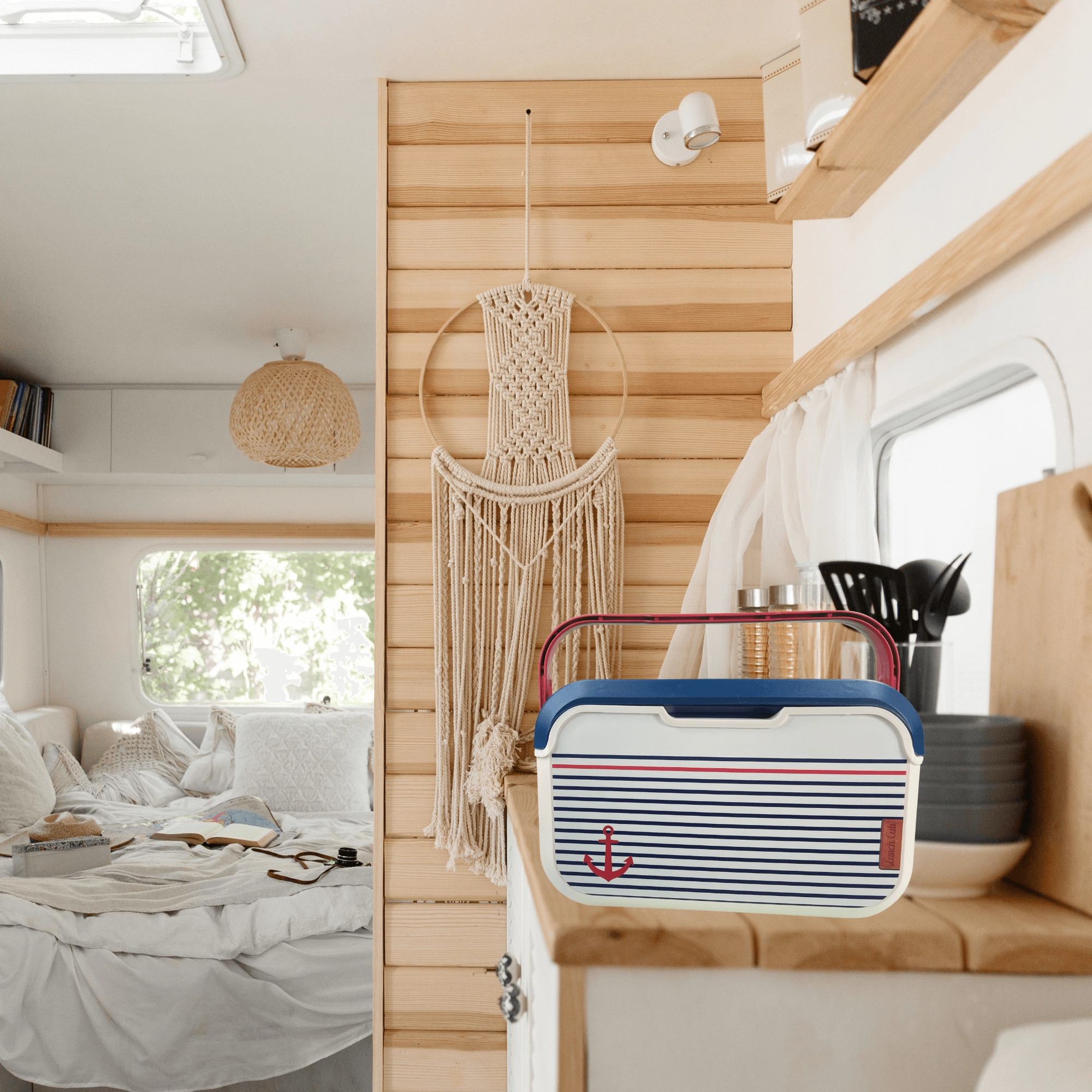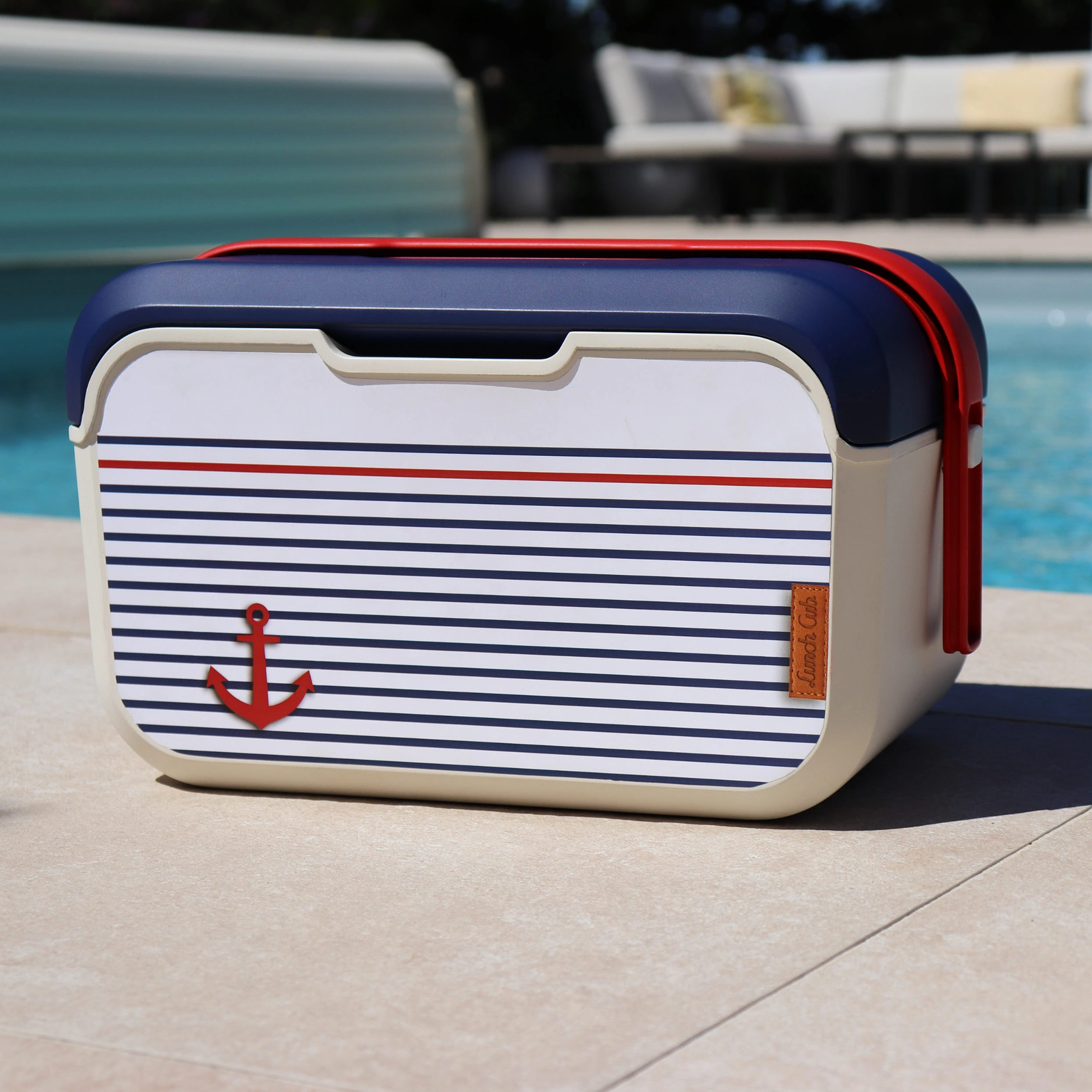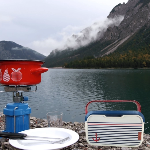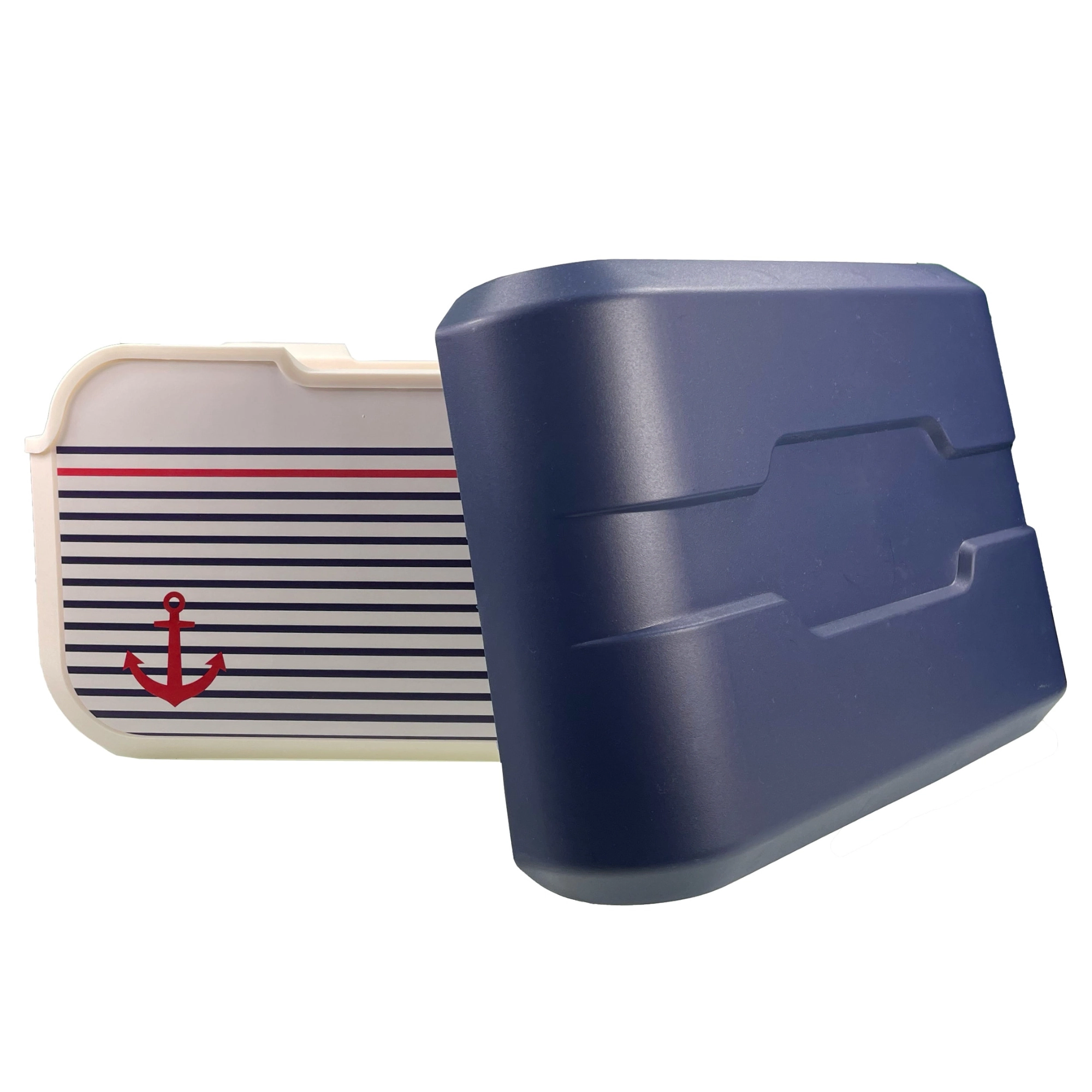 Corpo color vaniglia, coperchio blu e icona dell’ancora: perfetto per la spiaggia e il lago. La resistente plastica PP è inoltre facile da pulire.