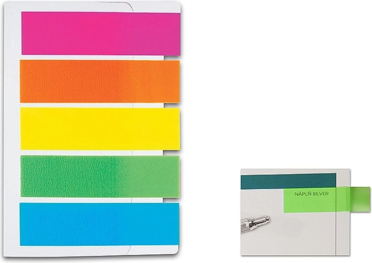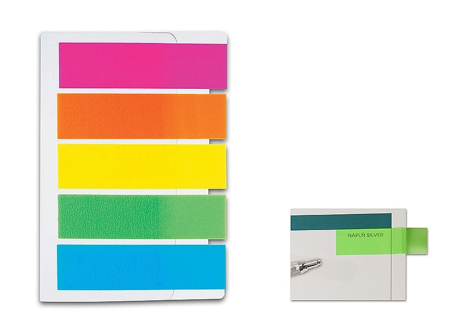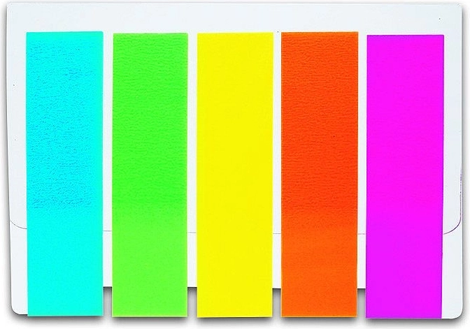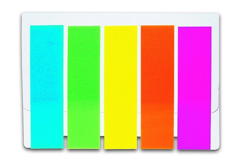 Pratici segnapagina adesivi CONCORDE in colori neon per una rapida marcatura e organizzazione dei documenti. La confezione contiene 5 colori vivaci da 20 foglietti ciascuno. I segnapagina sono in plastica resistente e scrivibile, facilmente removibile senza lasciare tracce. Grazie al formato stretto 12 × 48 mm sono perfetti per evidenziare il testo, classificare e applicare codici colore.