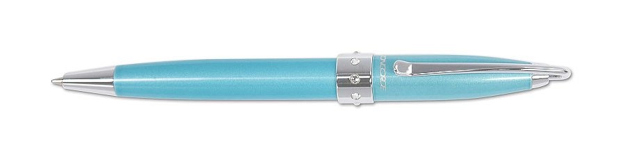 Elegante penna a sfera da donna per la scrittura quotidiana e le occasioni regalo. Dispone di un meccanismo a rotazione per l’estrazione comoda della punta, corpo in ottone laccato in tonalità madreperlate, finiture cromate e 8 cristalli Swarovski sull’anello centrale. Inclusi astuccio in similpelle e cartellino CONCORDE Swarovski che ne attesta l’autenticità.