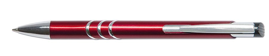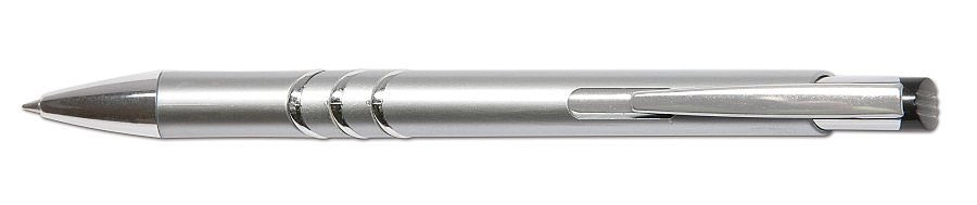 Elegante penna a sfera con pratico meccanismo a scatto, clip in metallo e finezza del tratto di 0,8 mm. Fornita in assortimento di colori (rosso, nero, argento) con ricarica di qualità Silver 4441 per una scrittura fluida e pulita.