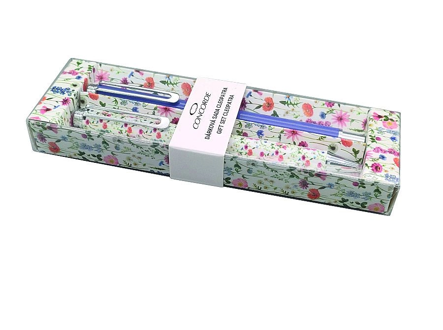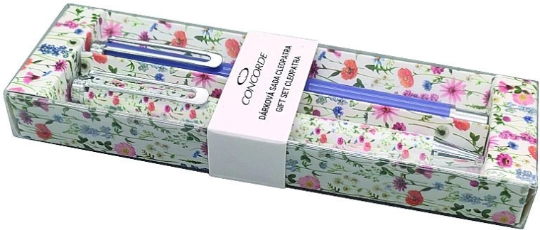 L'elegante set regalo CONCORDE Cleopatra farà felice ogni amante della scrittura. Include una penna a sfera colorata con meccanismo a rotazione e un roller viola, entrambi con clip in metallo e punta da 1,0 mm. Fornito in una confezione regalo coordinata. Sono incluse anche ricariche di qualità: metallo Silver per la penna a sfera e gel Makronka per il roller. Un'ottima scelta per una scrittura stilosa e scorrevole e come dono rappresentativo.