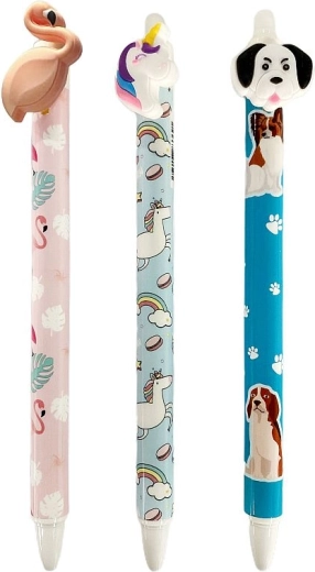 Il design in delicate tonalità pastello con motivi di animali (fenicottero, cagnolino, unicorno) aggiunge un tocco di allegria alla tua scrittura. Inoltre, la penna è conveniente ed ecologica: ha una ricarica sostituibile, quindi non serve acquistare una penna nuova.