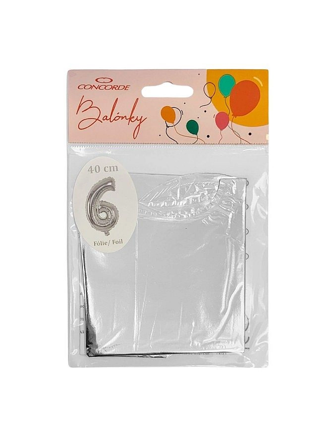 Elegante palloncino in foil a forma di numero 6, dimensione 40 cm, nel raffinato colore argento. Ideale per compleanni, anniversari e altre feste. Si gonfia facilmente con pompetta o cannuccia, non è necessario annodare l’apertura e per lo sgonfiaggio si può nuovamente usare la cannuccia. Pratici occhielli di sospensione in alto e in basso per facilitare la decorazione.