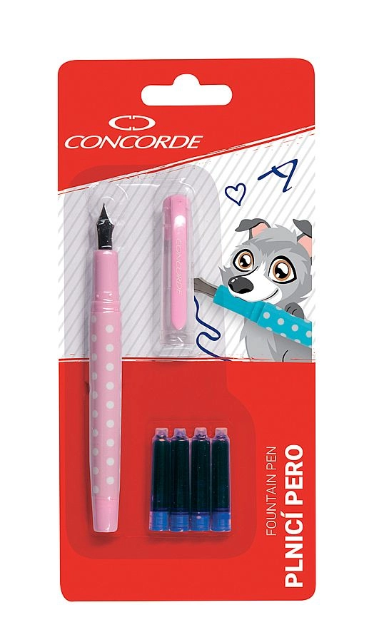 La stilografica CONCORDE Punto in delicate tonalità pastello offre scrittura fluida, impugnatura confortevole e pennino in acciaio inox affidabile. Nella confezione trovi 4 cartucce d’inchiostro, così puoi iniziare a scrivere subito dopo l’apertura. Fornita in assortimento blu e rosa su blister – ideale per scuola, ufficio e scrittura creativa.