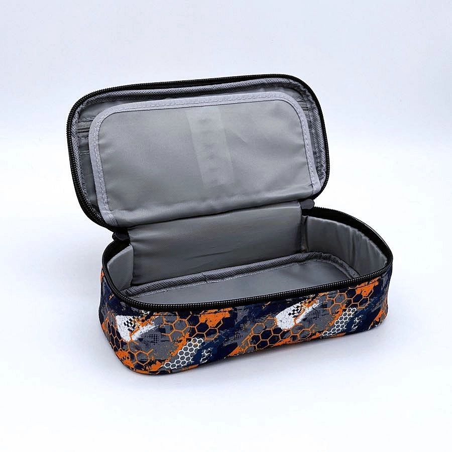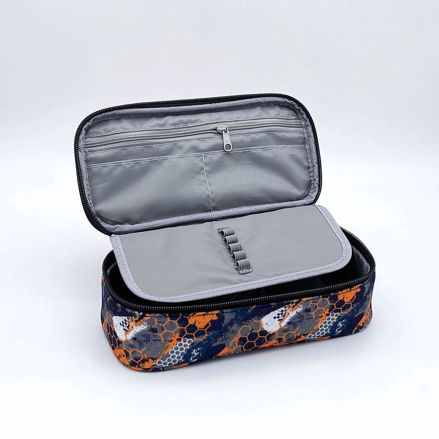 Questo astuccio con patta, nella attraente combinazione arancione-blu, fornisce tutto ciò di cui i bambini hanno bisogno a scuola. Grazie alla disposizione interna studiata, avrai sempre a portata di mano e ben protetti sia gli articoli di scrittura sia i piccoli accessori.