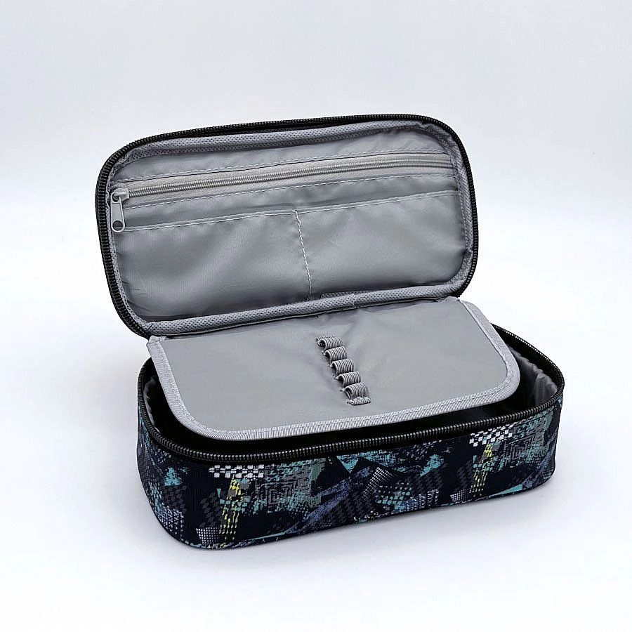 Pratico astuccio scolastico CONCORDE dal design moderno verde‑nero, offre ampio spazio per riporre il materiale scolastico. Dispone di una patta, scomparto principale e tasca con zip con ulteriori scomparti per un’organizzazione impeccabile. Ideale per gli alunni che desiderano avere tutto in ordine in un unico posto.