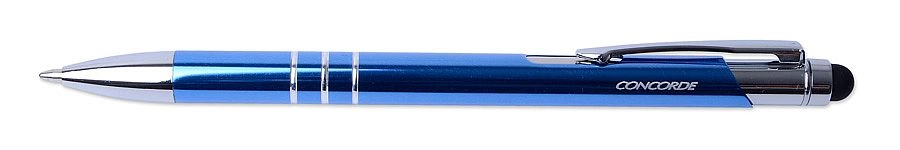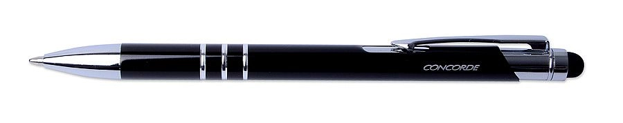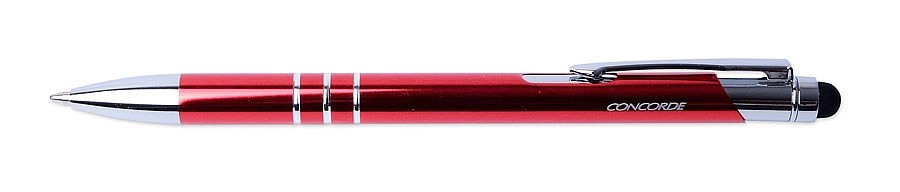 Elegante penna a sfera CONCORDE Soft con punta touch per l’uso con smartphone e tablet. Presenta un corpo interamente in metallo con accessori cromati, meccanismo a scatto ed è disponibile in un mix di colori (rosso, blu, nero). Offre una ricarica Silver sostituibile e una punta fine da 0,8 mm per una scrittura confortevole.