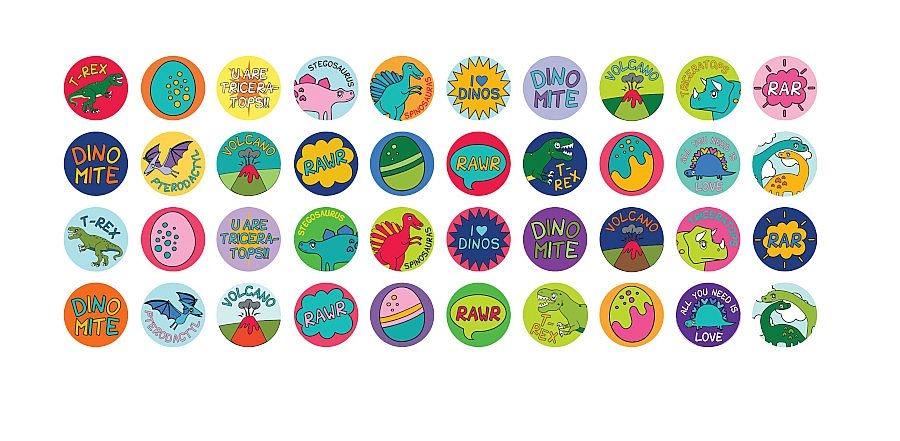 La confezione contiene 160 adesivi nel timbro e 160 nella ricarica – un’ampia scelta di motivi di dinosauri per la scuola, i progetti domestici e come ricompense.