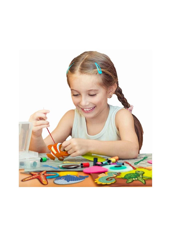 Questo set creativo è una scelta perfetta per lavoretti a casa, laboratori e come progettino semplice per un pomeriggio libero. Crea immagini uniche con gli animaletti dell’oceano e godi della soddisfazione del lavoro fatto a mano.