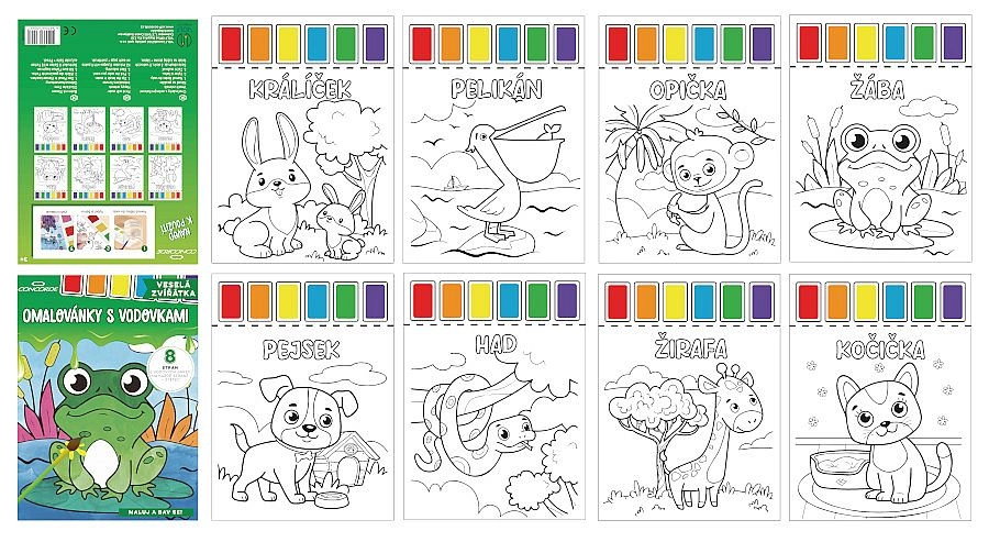 Stimolate la creatività e la motricità fine dei bambini con gli album da colorare con acquerelli CONCORDE. Ognuno degli 8 allegri motivi di animaletti è dotato di una tavolozza integrata con 6 colori, quindi basta inumidire il pennello e dipingere. Il pratico formato A4 è ideale per creare a casa e in viaggio.