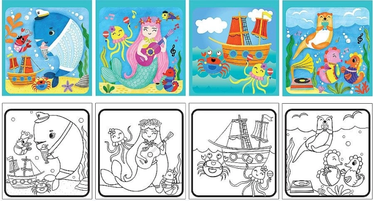 Questi album sono realizzati in cartone rigido per una lunga durata e un utilizzo confortevole. Sono ottimi per motricità fine, creatività e pazienza dei bambini – senza bisogno di pastelli o pennarelli.