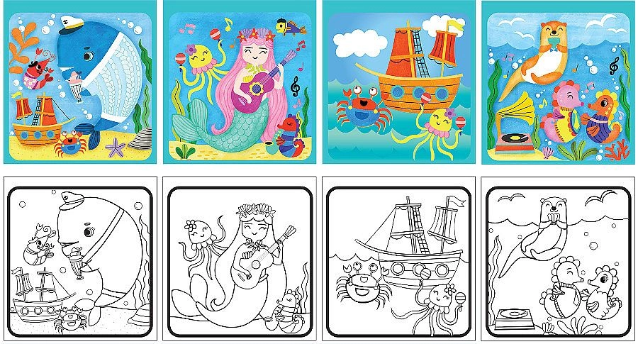 Scopri il divertimento senza disordine con i libri da colorare magici CONCORDE a tema oceano. Basta riempire il pennello incluso con acqua e, passando sulla superficie bianca, i colori appaiono immediatamente. Una volta asciutti, i disegni sono riutilizzabili, così i bambini possono divertirsi ancora e ancora – ideali in viaggio, al ristorante e a casa.