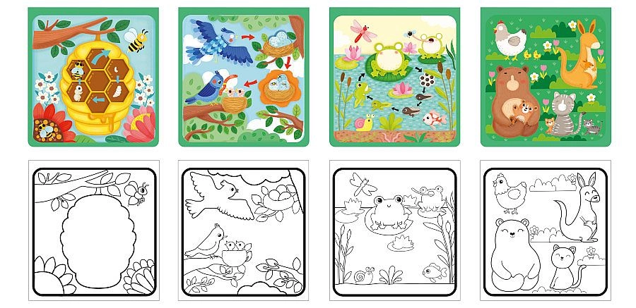 I libri da colorare magici CONCORDE – vita nella natura offrono ai bambini un disegno facile e pulito. La superficie bianca, a contatto con l'acqua, rivela colori vivaci e dettagli che scompaiono nuovamente una volta asciutti. Grazie a questo, i libri da colorare sono riutilizzabili e perfetti a casa e in viaggio.
