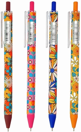 Elegante penna a sfera dal design accattivante, con superficie antiscivolo in plastica leggermente gommata e meccanismo a scatto per una scrittura confortevole. Punta fine 0,7 mm e inchiostro blu Extra Fine per un tratto pulito e preciso. Fornita in mix di 4 combinazioni dai colori vivaci.