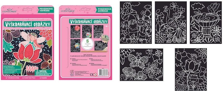 Il set di immagini da grattare Concorde – giardino fiabesco è ideale per bambini e adulti che amano le attività creative. Basta prendere il raschietto in legno incluso e scoprire progressivamente le superfici: il risultato saranno immagini vivaci e ingegnose con motivi fiabeschi.