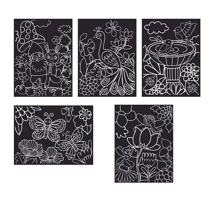 Scoprite la magia della creatività con questo divertente set di immagini da grattare. La confezione offre 5 motivi prestampati a tema fiabesco, di cui 2 immagini con una brillante finitura madreperlata. Con l'aiuto del raschietto in legno rivelerete facilmente le illustrazioni nascoste, stimolerete la fantasia e creerete opere originali.