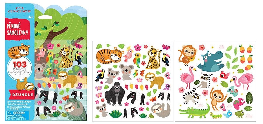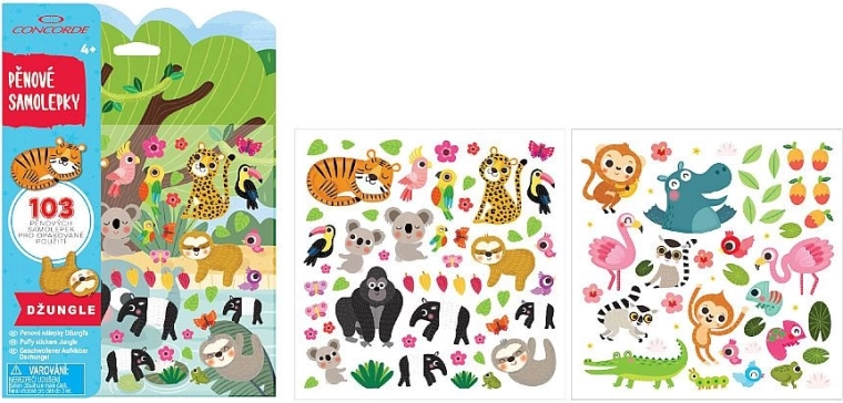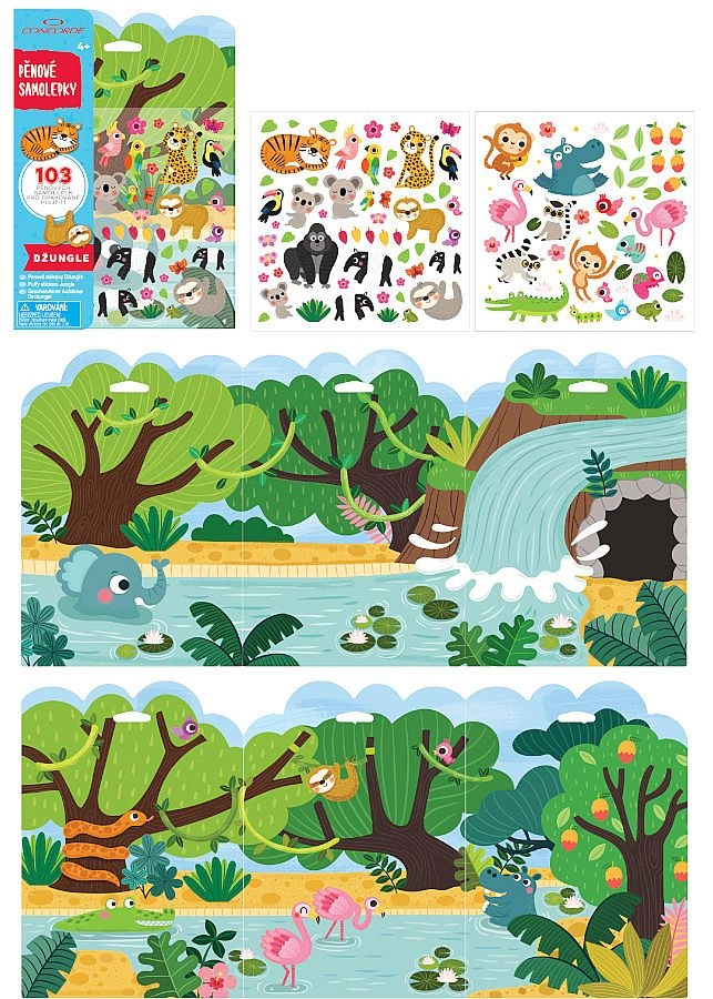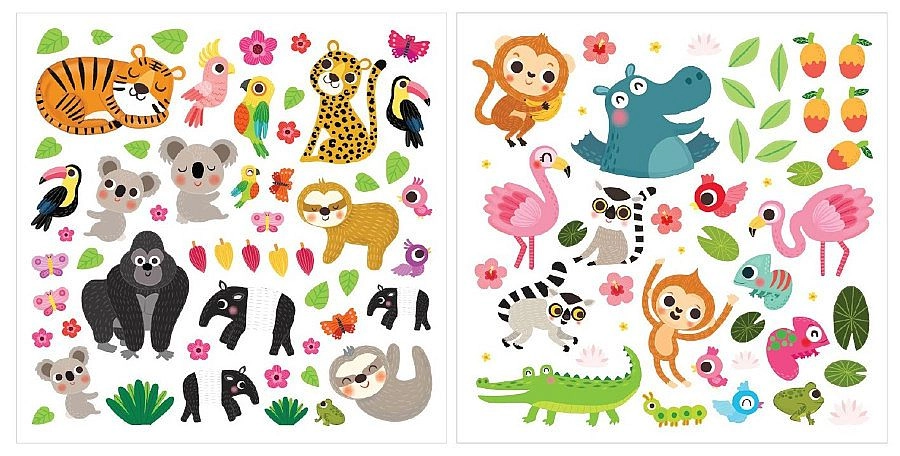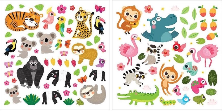Crea il tuo mondo selvaggio a tema giungla! Questo set di adesivi in gomma CONCORDE offre un gioco facile e pulito senza disordine: gli adesivi aderiscono a qualsiasi superficie liscia senza usare colla e possono essere spostati liberamente. Ideali per attività creative a casa, in viaggio e per pomeriggi tranquilli.