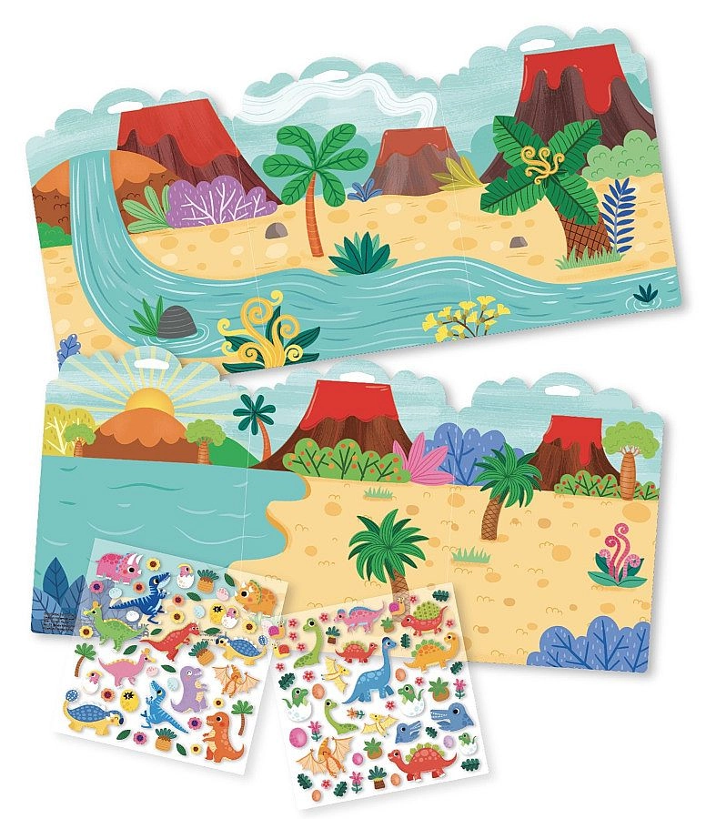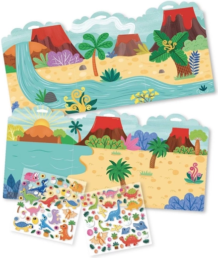 Nella confezione trovi 102 adesivi in schiuma con simpatici motivi di dinosauri e una plancia di gioco pieghevole bifacciale che offre ambientazioni diverse per giocare. Ideale in viaggio, nella cameretta o come regalo.