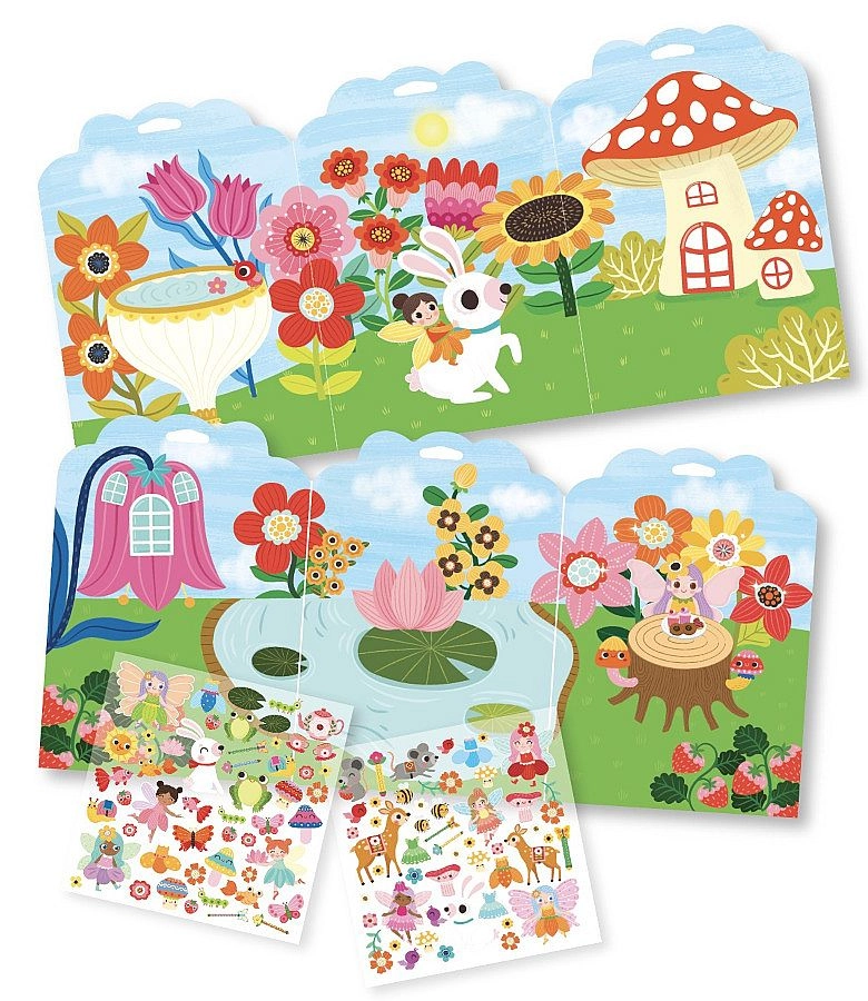 Scopri un mondo di gioco con pratici adesivi in gomma riutilizzabili a tema giardino fatato. Gli adesivi aderiscono alle superfici lisce senza colla, così i bambini possono spostarli facilmente e creare storie sempre nuove. Il set include 116 pezzi e una base di gioco pieghevole bifacciale – ideale per sviluppare la motricità fine e la creatività.