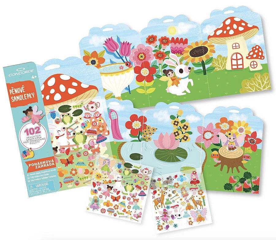 Crea un mondo incantato con gli adesivi in gomma colorati Concorde. Questo set a tema giardino fatato è progettato per divertire i bambini e allo stesso tempo supportarne le abilità. Basta applicare gli adesivi su una superficie liscia: grazie al materiale adesivo aderiscono senza colla e possono essere riposizionati più e più volte.