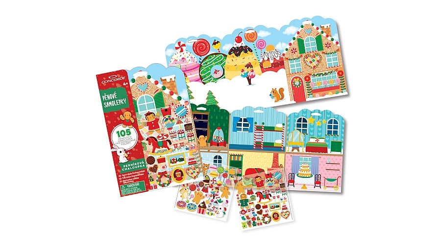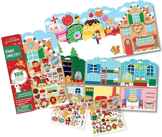 Crea il tuo mondo da fiaba con il set creativo CONCORDE. 105 adesivi in gomma a tema casetta di pan di zenzero aderiscono alle superfici lisce senza colla, così puoi riutilizzarli e riposizionarli tutte le volte che vuoi. Un divertimento perfetto che sviluppa la motricità fine e la fantasia dei bambini. Incluso un'area di gioco pieghevole a doppia faccia per un divertimento ancora maggiore.