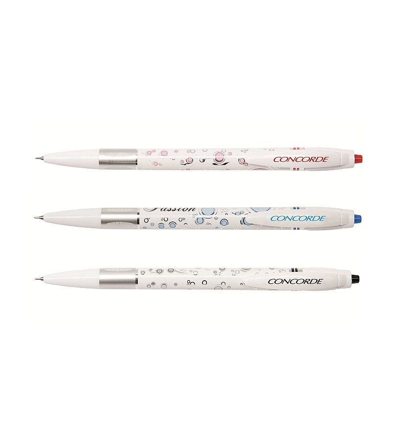 Elegante penna a sfera Concorde Passione dal design originale, offre una scrittura straordinariamente fluida grazie alla speciale ricarica giapponese con inchiostro gel. Dispone di punta ad ago da 0,6 mm per tratti precisi ed è fornita in mix di colori con ricarica blu. Compatibile con ricarica di ricambio Extra Fine.