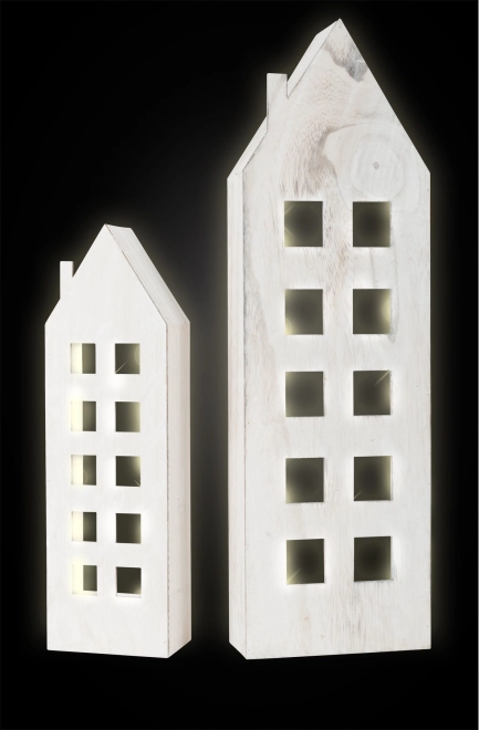 Queste due casette decorative si distinguono per il loro stile semplice, adatto a qualsiasi interno. Grazie all'illuminazione LED a batteria diventano un elemento distintivo della decorazione: