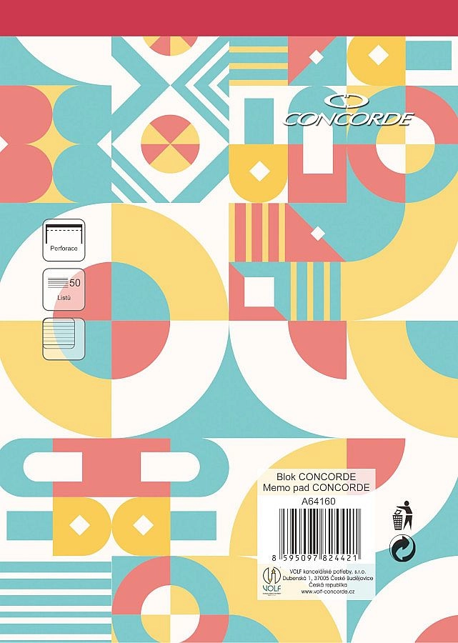 Pratico blocco CONCORDE a righe in formato A4 con perforazione, offre 50 fogli di carta bianca senza legno di qualità con grammatura 55 g/m². La larghezza della rigatura di 8 mm è ideale per una scrittura ordinata, la rilegatura incollata consente uno strappo facile e il dorso rosso distingue a colpo d’occhio il tipo rigato.