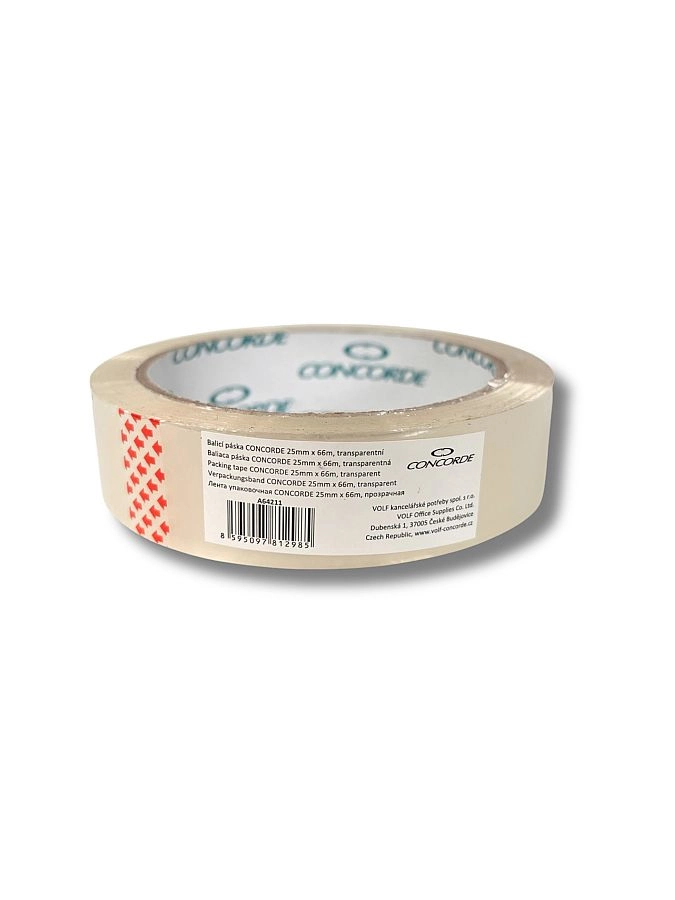 Nastro adesivo trasparente CONCORDE di qualità, dimensioni 25 mm × 66 m, ideale per la chiusura quotidiana di scatole e spedizioni. Grazie all’adesivo acrilico a base d’acqua offre incollaggio pulito e affidabile, adesione duratura e resistenza all’invecchiamento. Perfetto per magazzini e linee di confezionamento, ogni rotolo include codice EAN per una facile tracciabilità.
