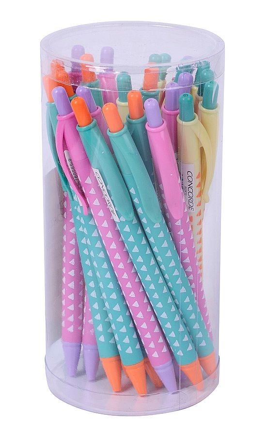 Elegante penna a sfera CONCORDE Crazy in colori pastello per una scrittura quotidiana confortevole. Offre superficie antiscivolo con delicata goffratura, punta fine 0,7 mm per un tratto fluido e possibilite0 di sostituzione della ricarica Crazy. Fornita in mix di 3 combinazioni di colori.