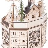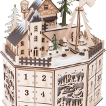 Magico calendario dell'Avvento, che porterà l'atmosfera natalizia nella tua casa. Questa decorazione affascinante cattura l'attenzione con il suo bel design e edifici storici illuminati nel villaggio natalizio.