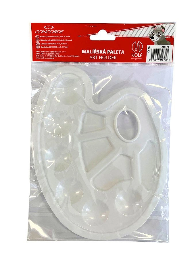 Pratica tavolozza per pittura CONCORDE bianca con in totale 10 vaschette – 6 per i colori e 4 per la miscelazione. Realizzata in plastica resistente ed elastica, grazie alle dimensioni compatte si impugna e si trasporta con facilità. Scelta ideale per hobbisti e studenti delle arti visive.