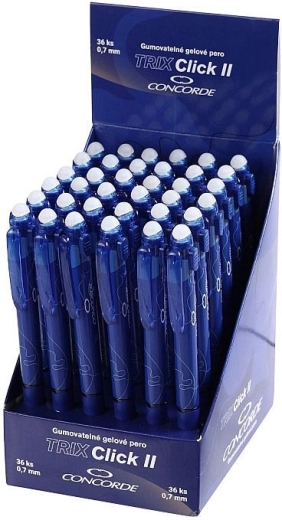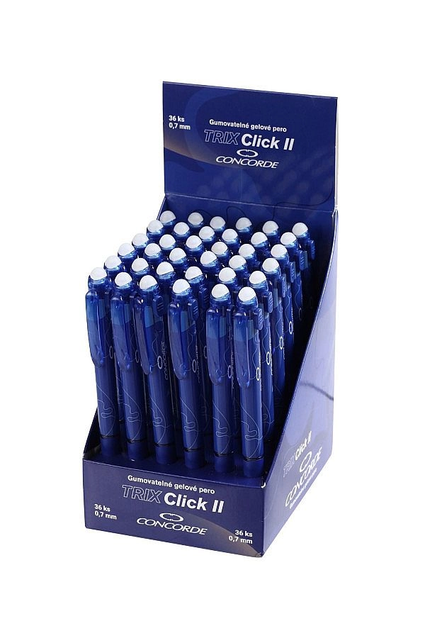 Goditi una scrittura scorrevole e precisa con la penna gel cancellabile CONCORDE Trix Click II. Il meccanismo a scatto consente un utilizzo rapido con una sola mano, mentre la speciale gomma all'estremità del corpo penna cancella in modo affidabile il testo scritto senza danneggiare la carta. Scelta ideale per appunti scolastici, note d'ufficio e scrittura quotidiana.