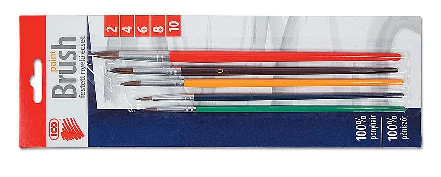 Pratico set di 5 pennelli rotondi ICO nelle misure 2–10, ideale per l’educazione artistica a scuola e per i lavori creativi a casa. Offre per tratti fluidi, punte rotonde per lavori di dettaglio e stesure omogenee del colore, e manici in legno laccati colorati per una presa confortevole. Fornito in blister per un’organizzazione ordinata.