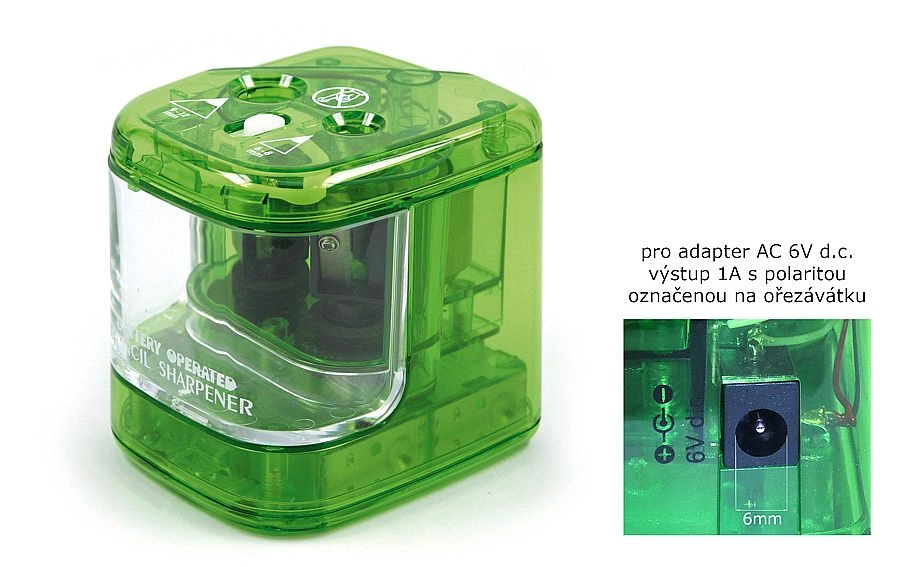 Il dispositivo è alimentato da 4× AA e può essere utilizzato anche con alimentatore (non incluso nella confezione). Il temperamatite offre un'affilatura rapida, uniforme e pulita della punta senza spezzare la mina, risparmiando tempo e materiale.