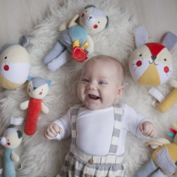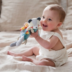 Motivi a contrasto, texture diverse e dettagli delicati favoriscono lo sviluppo della vista, del tatto e della motricità fine fin da 0+.